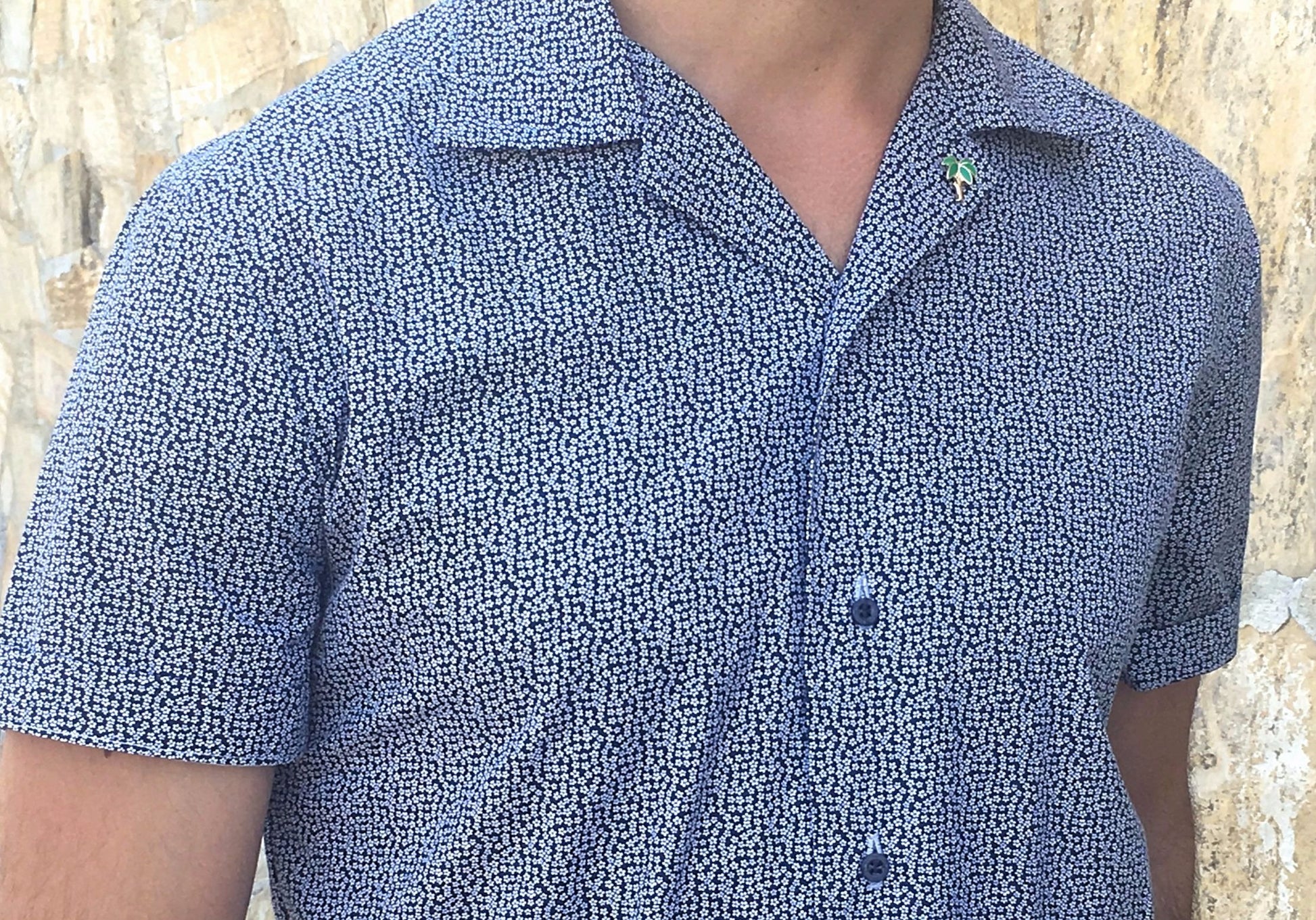 Short sleeve shirt in flower pattern, regular fit, cuban collar, short sleeve. Palm pin included.