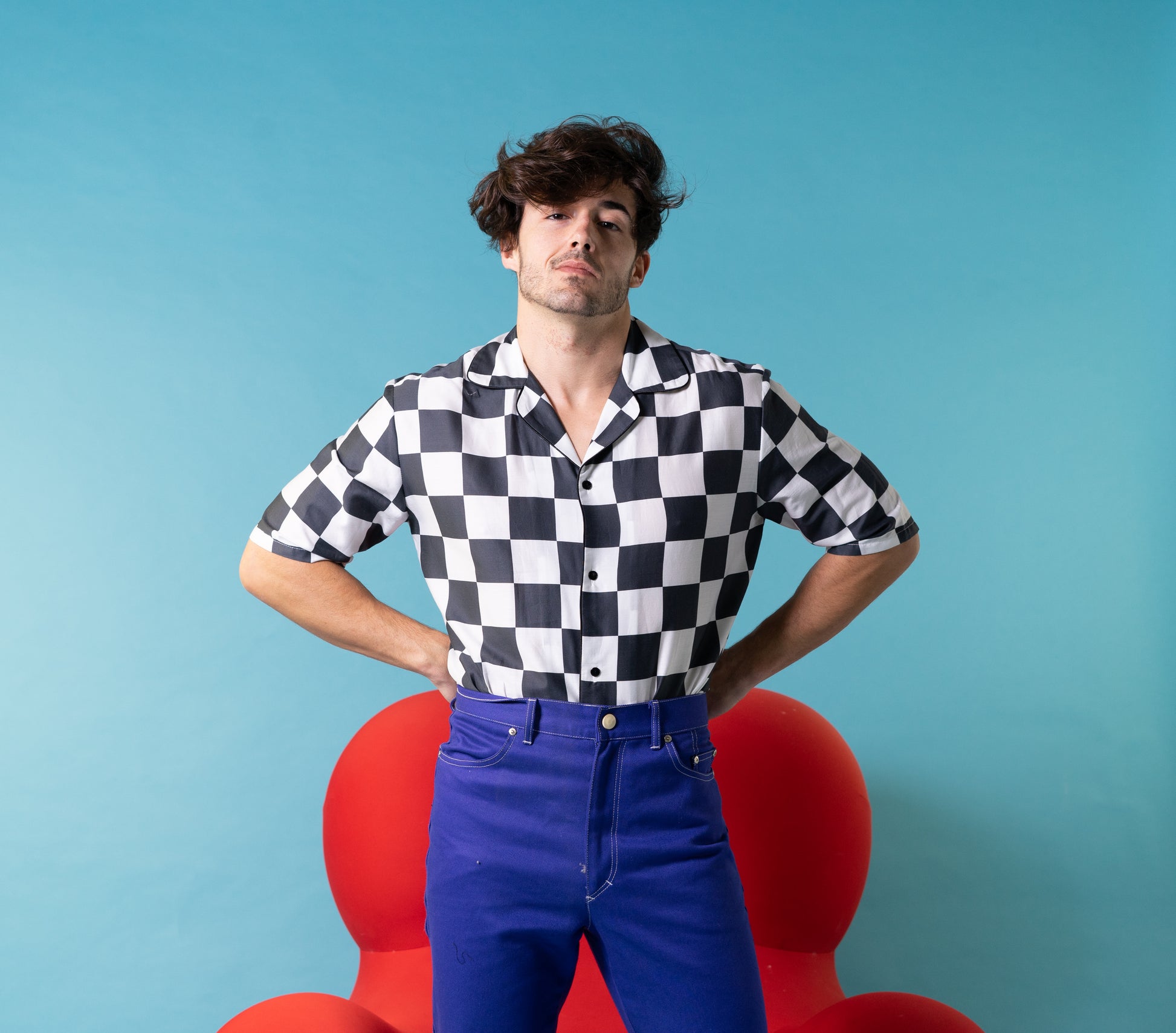 Short sleeve shirt in square pattern, car and logo printed. Regular fit, cuban collar, short sleeve.