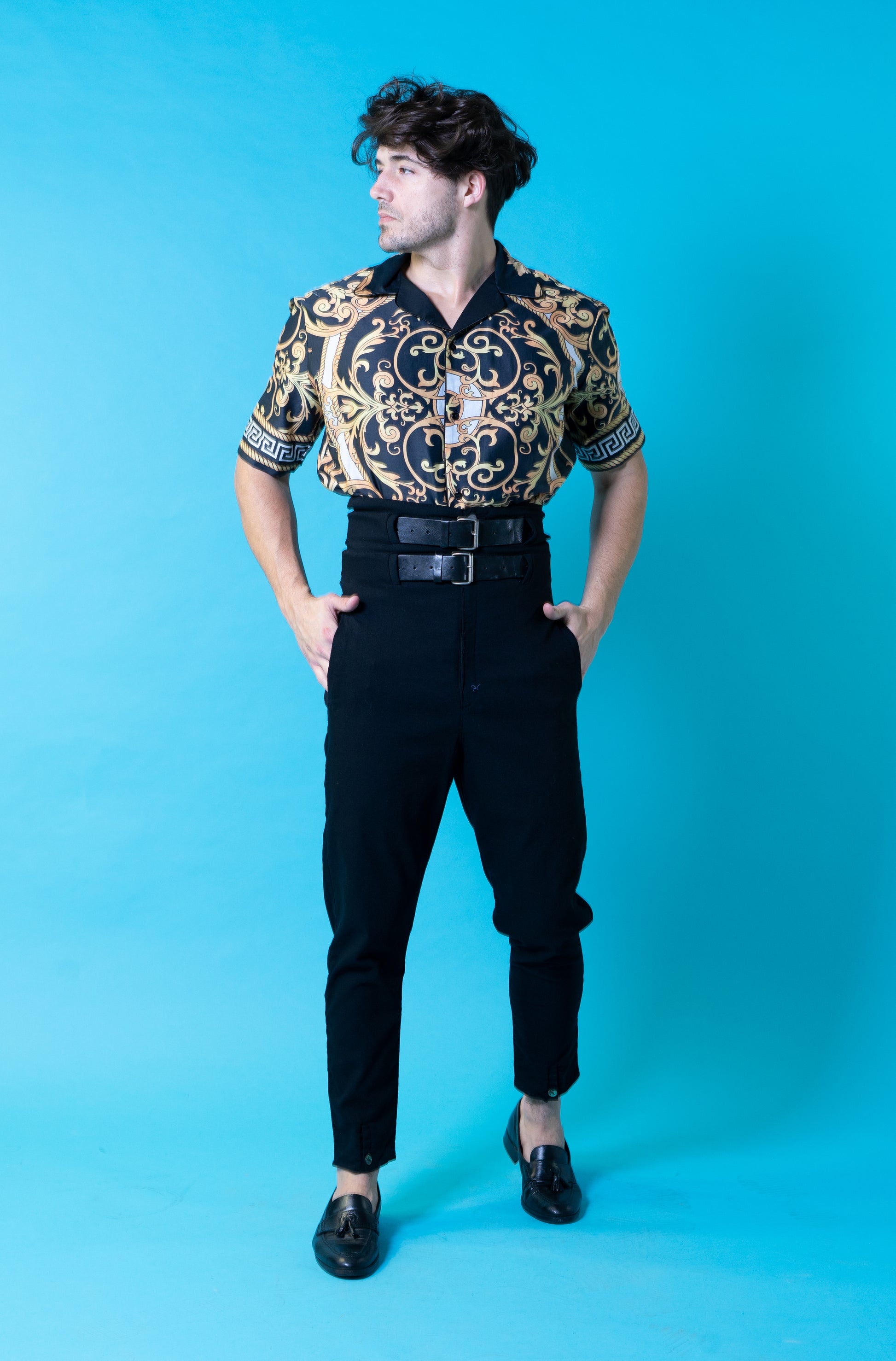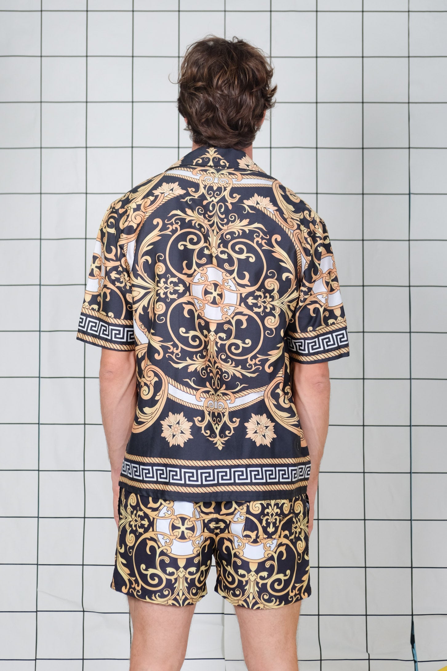 Short sleeve shirt in printed fabric, loose fit, revere collar and short sleeve.