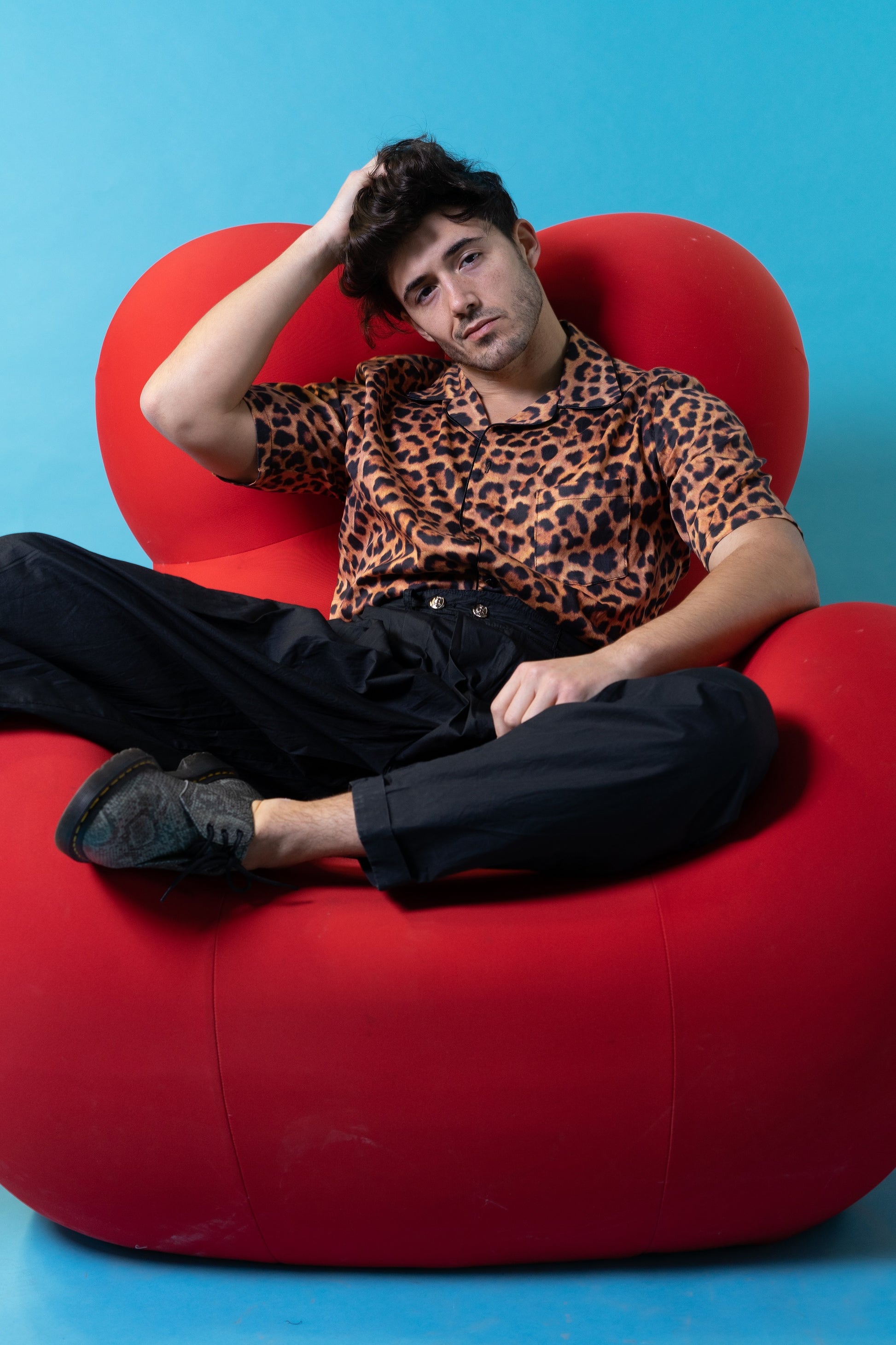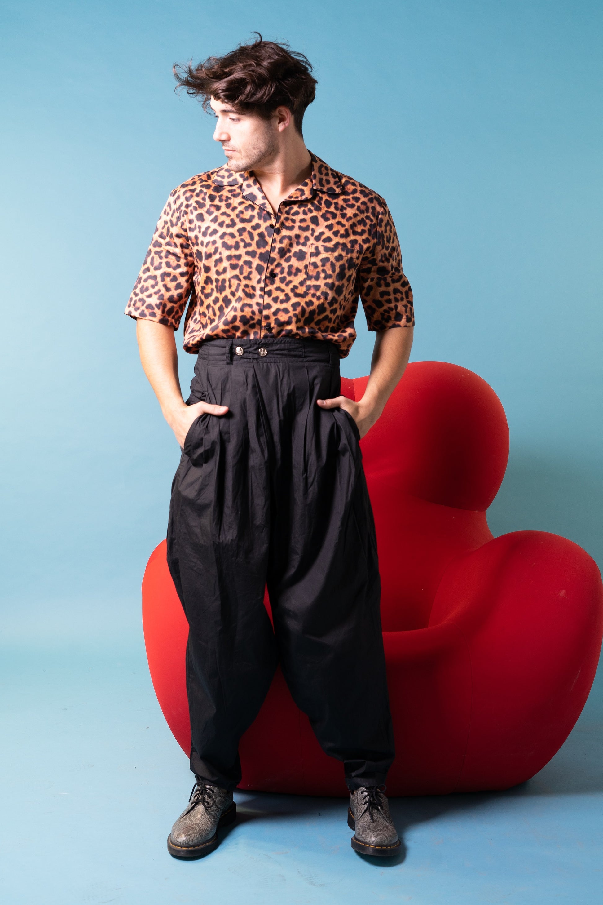 Short sleeve shirt in animal print pattern in loose fit, revere collar, short sleeve.
