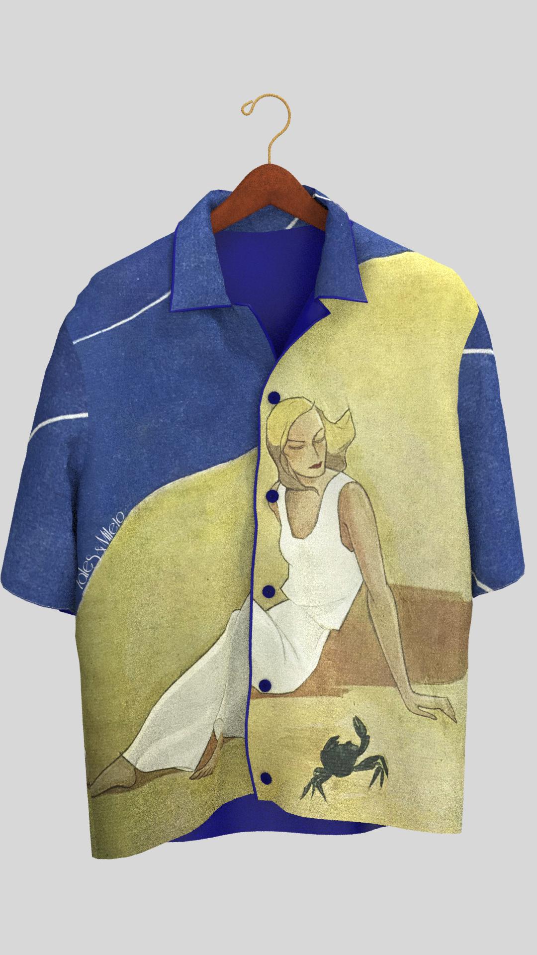 Short sleeve shirt in printed fabric, loose fit, revere collar and short sleeve.